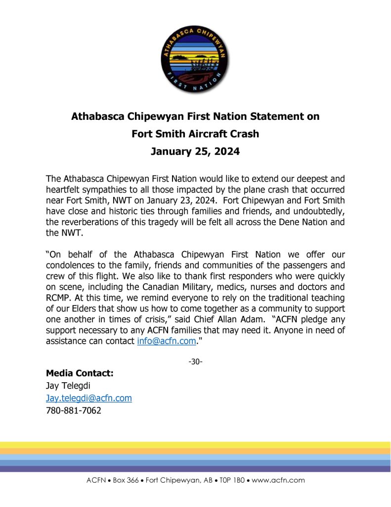 Athabasca Chipewyan First Nation Statement on Fort Smith Aircraft Crash