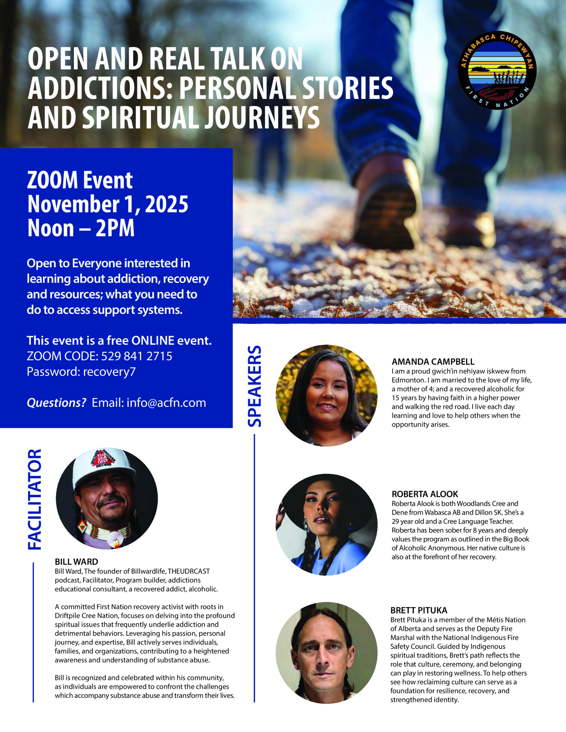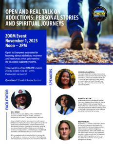 Date Nov 01 2025 Expired! Time 12:00 pm - 2:00 pm OPEN AND REAL TALK ON ADDICTIONS: PERSONAL STORIES AND SPIRITUAL JOURNEYS This event is a free ONLINE event. ZOOM CODE: 529 841 2715 Password: recovery7 Questions? Email: info@acfn.com Share this event + Add to Google Calendar + iCal / Outlook export