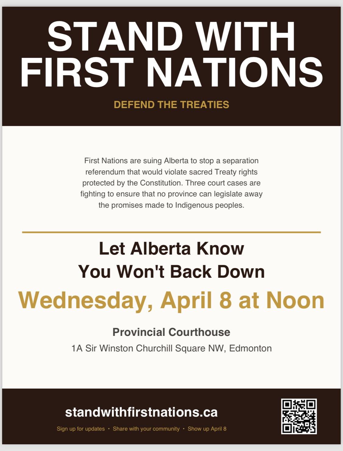 Date Apr 08 2026 Time 12:00 pm Stand With First Nations Share this event + Add to Google Calendar + iCal / Outlook export 00 days 00 hours 00 minutes 00 seconds